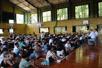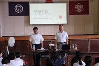 延岡大空襲の日(6月29日)を控え、本校では、「平和に関する講話」を中学部、小学5・6年生に実施しました。岩切氏、寺田氏の2名の講師が来校してくださいました。当時の戦争で幼い少年、少女が銃後としてさまざまな仕事を強いられていたことや延岡大空襲で受けた爆弾(ナパーム弾)の実際の動画を視聴しました。また、「命の橋」についても延岡市民の多くの命を爆弾から救った橋として、平和について一人一人が深く学んだ時間となりました。