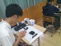 中学部3年美術の時間に「水墨画」の学習を行いました。筆の使い方や墨の濃さの調整に加え、「積墨法(せきぼくほう)」と「破墨法(はぼくほう)」という2つの技法を体験しました。生徒たちは筆の動きや墨の広がりを楽しみながら、集中して取り組んでいました笑う