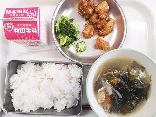2学期最後の給食でした。クリスマス献立ということで、チキンライスやクリスマスデザートが出てきました。