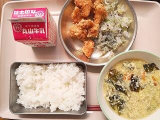 今日は、子どもたちにも大人気の唐揚げをいただきました。お肉が柔らかく、美味しかったです。