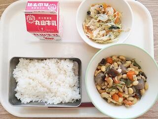 今日は、五目豆をいただきました。大豆に加え、鶏肉や人参、ごぼう、こんにゃくなど様々な具材が入っており、栄養満点で、食感も楽しめました。