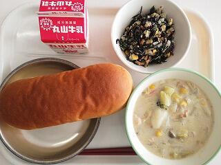 今日は、白菜のクリーム煮をいただきました。具沢山でとても美味しかったです。とろみがあり、冷たい風で冷えた体が温まりました。