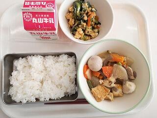 今日は、みそ煮をいただきました。大根、人参、こんにゃく、豚肉、厚揚げなど具沢山で美味しかったです。宮崎県産の里芋も入っていました。とても柔らかく、味がよく染みていました。