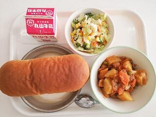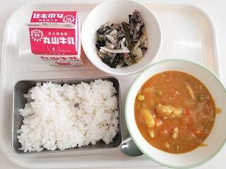 今日は、チキンカレーをいただきました。甘口のカレーは子どもたちにも大人気のメニューです。ごはんがよく進みました。