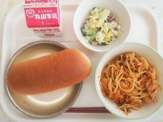今日は、ひむか地産地消の日に合わせて、ひむかナポリタンが出されました。宮崎県産の鶏肉、人参、干し椎茸、千切り大根、カラーピーマンが入っていました。ケチャップたっぷりのナポリタンはとても美味しかったです。