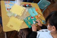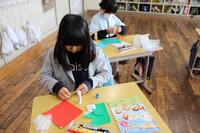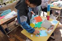 3年生は、Unite7で「This is for you」の授業でカード作りを行いました。チエミ先生に自分から「プリーズ ブラウン スクエア」とカードに貼りたい色と形を英語で表現していきます。みんな一生懸命にチエミ先生に話しかけている姿がたくさん見られました。たくさんのカードが完成しましたね。