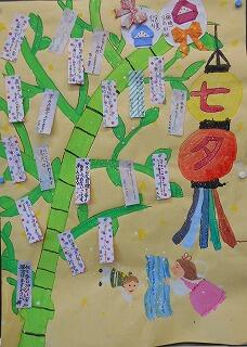 傍らには、七夕の願い事が完成しており、心温かくなった国語の授業でした。
