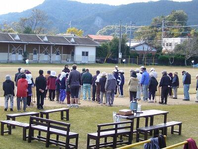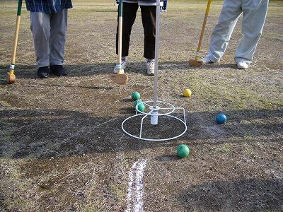11月29日(金)にふれあい交流会がありました。地域の高齢者の皆様と、熊野江中学校の運動場で、『グラウンドゴルフ』をしました。中学生と高齢者の皆様を5つのチームに分けて、ローカルルール(熊野江ルール)でスコアを競いました。
