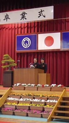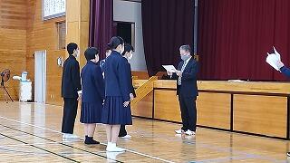 昭和22年創立以来、2532名の卒業生がこの中学校から巣立っていきました。本日の卒業生2名は、最後の卒業生と