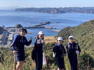 出をこの山で見る島民の方々も多く、全校生徒で整備しました。