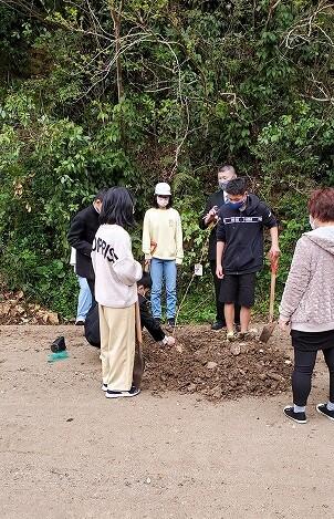 離任式後、小学校・中学校の卒業生により、桜の植樹も行われました。