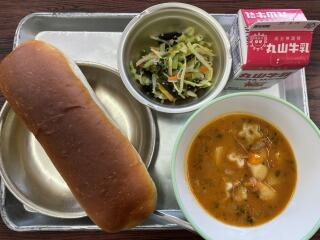 【ミルクパン 牛乳 ミネストローネ 海藻サラダ】