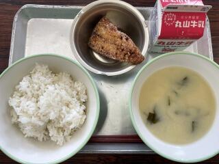 【麦ご飯 牛乳 魚の竜田揚げ 豆腐のみそ汁】