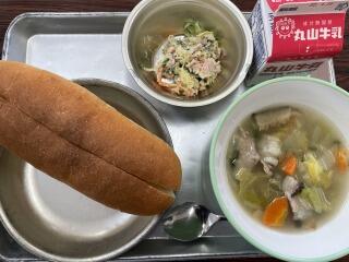 【コッペパン 牛乳 たこやき風 野菜スープ】