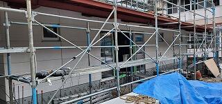 校舎前の壁工事