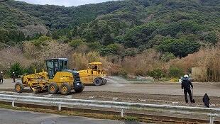 18日(金)は、のり面をアスファルト工事しました。運動場は月曜日になります。