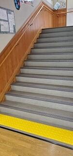 中央階段の床の張り替えも終了しました。また、職員室に新しいキャビネットが搬