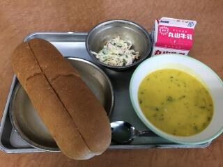【背割れパン 牛乳 ツナサンド かぼちゃスープ】