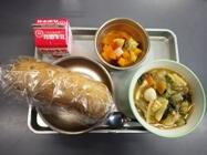 いつも美味しいパンと給食の 栄養のバランスと美味しい給食の いつも美味しい給食をつくって