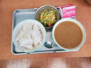 【麦ご飯 牛乳 チキンカレー フレンチサラダ】