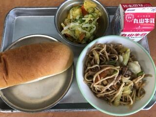 【減量コッペパン 牛乳 焼きそば 甘夏ミカンのサラダ】