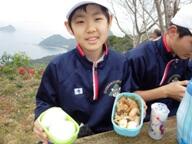 それから頂上を目指して再びトレッキング開始。灯台のある山頂で昼食。今日は今年2回目の「弁当の日」だったので、自分で作った(?)弁当を子どもたちは食べていました。