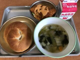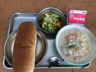 【コッペパン 牛乳 たこやき風 野菜スープ】