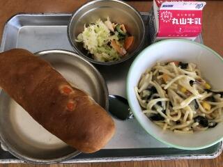 【減量コッペパン 牛乳 みそラーメン れんこんサラダ】