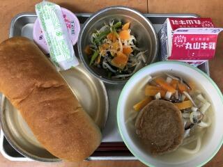 【減量コッペパン 牛乳 肉うどん 白菜の塩こんぶ和え】