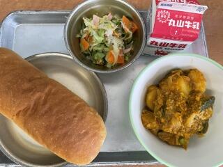 【減量コッペパン 牛乳 島っ子カレーうどん ゆかり和え】