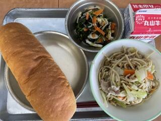【減量コッペパン 牛乳 塩焼きそば 千草和え】