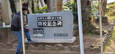 18日(金)、小学校に閉校記念碑の設置作業がありました。中学校には、閉校と開校をあわせた記念碑ができます。