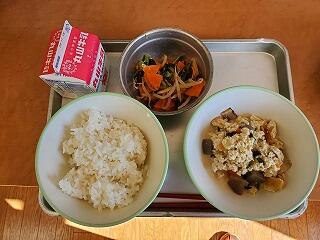 【白ご飯 牛乳 そぼろ 真鯛の味噌汁】