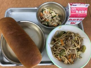 【減量コッペパン 牛乳 焼きそば バンバンジー】