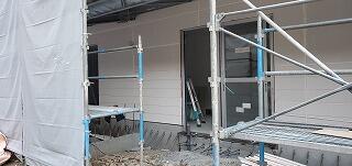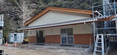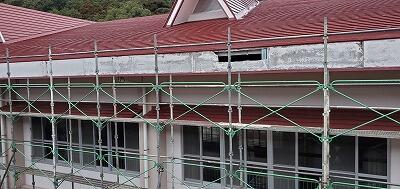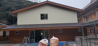 外壁が給食棟と新校舎に入りました。(新校舎の2階はまだですが)残り2ヶ月で