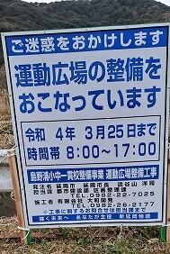 18日(金)、小学校に閉校記念碑の設置作業がありました。中学校には、閉校と開校をあわせた記念碑ができます。