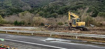 校舎前の新設される運動場の工事が進んでいます。草やコンクリートはなくなりま