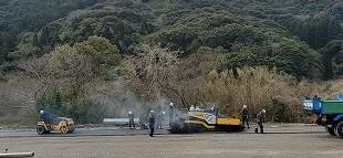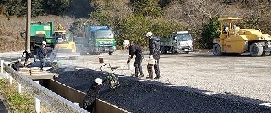 運動場の地面の整備が終わり、アスファルトを敷く作業の段階に入りました。アス