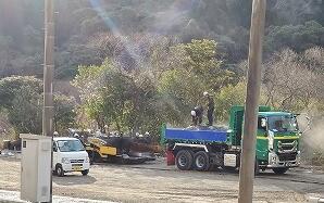 18日(金)は、のり面をアスファルト工事しました。運動場は月曜日になります。