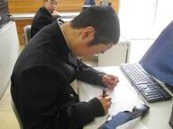 この時間は学力検査を受けています。午後は面接です。受検しなかった3年生はいつもよりも少ない人数で授業を受けていました。