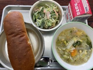 【白ご飯 牛乳 ホイコーロー 中華スープ】