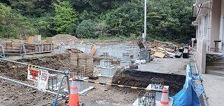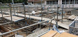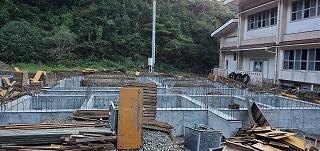 新校舎・給食棟の基礎のコンクリートができあがりました。