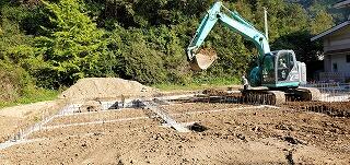 基礎のコンクリートができ、土入れがはじまりました。この上に鉄筋等が組まれ校舎の原型が作られていきます。