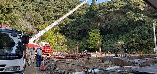フェリーのドックが終わり、新校舎の工事が再開しました。鉄筋が運ばれ、いよいよ