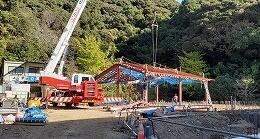 体育館から新校舎の渡り廊下の様子が見えてきました。また、給食棟の外壁も設置