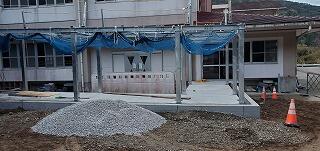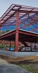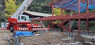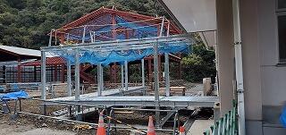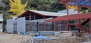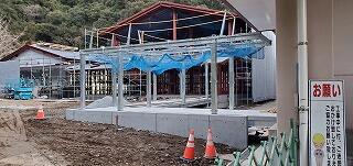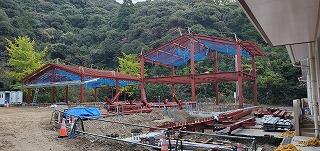 給食棟の鉄筋の骨組みができはじめ、給食棟の原型が分かるようになりました。