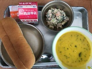 【マヨネーズパン 牛乳 さつまいものポタージュ マンゴー】