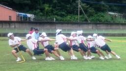 島野浦中学校には運動場がないため、運動会は中学校の近くにある野球場「マリン球場」で行います。今日は午後からの天気が心配だったので1時間目から練習を始めました。今日の練習は徒走や団技の他に、エール交換やソーラン節も行いました。明日は予行練習です。計画通りできるとよいのですが・・・・。