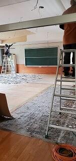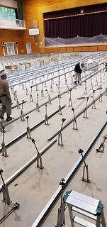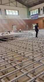 土日も工事を行っており、体育館の床が半分になり、下支えが見えています。