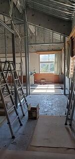 3階の音楽室は、2つの普通教室と廊下と手洗い場に改修されます。その骨組みが
